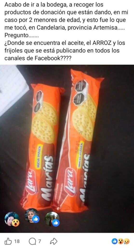Sin embargo, algunos residentes han expresado su frustración por la forma en que se está distribuyendo la ayuda. En redes sociales se han difundido múltiples comentarios de cubanos que aseguran no haber visto la mayoría de los productos anunciados o que han recibido cantidades muy limitadas.